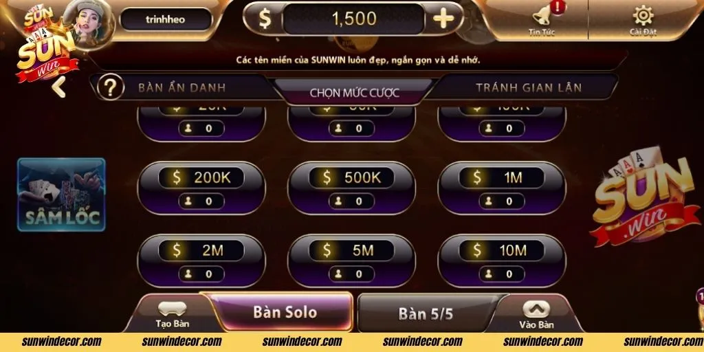 - Mỗi bàn cược Bài Sâm Sunwin có tối thiểu 2 người và tối đa 3 người chơi.